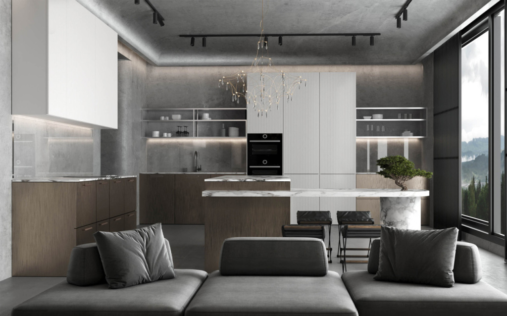 - Укажите требования к функциональности: углы, выдвижные модули, скрытые системы хранения, глубокие ящики под бытовую технику.