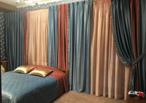 - Плотность и вес — для штор лучше выбирать плотный бархат (не менее 300–400 г/м²), чтобы он хорошо драпировался и не просвечивал.