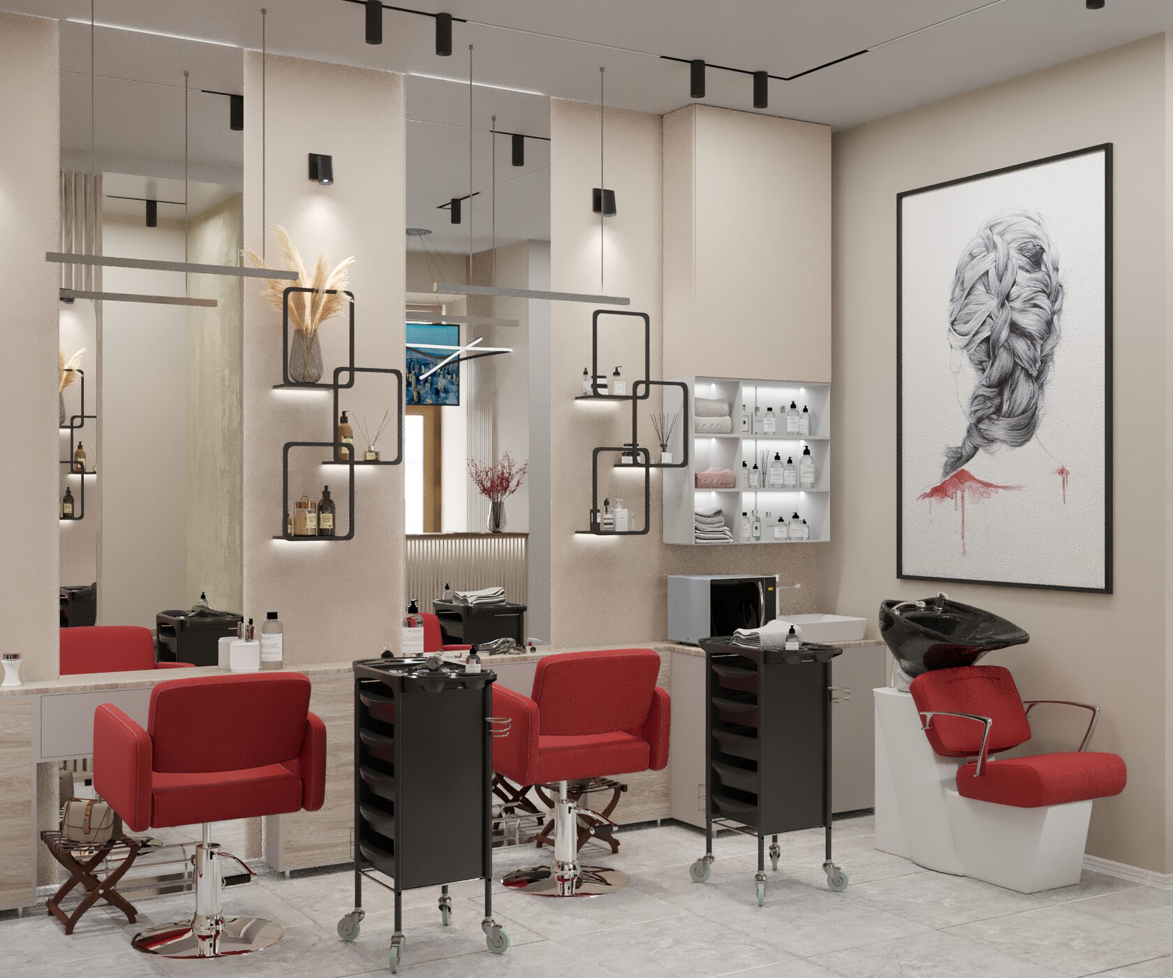 Благодаря грамотному дизайну парикмахерская становится не только красивым, но и прибыльным бизнесом.