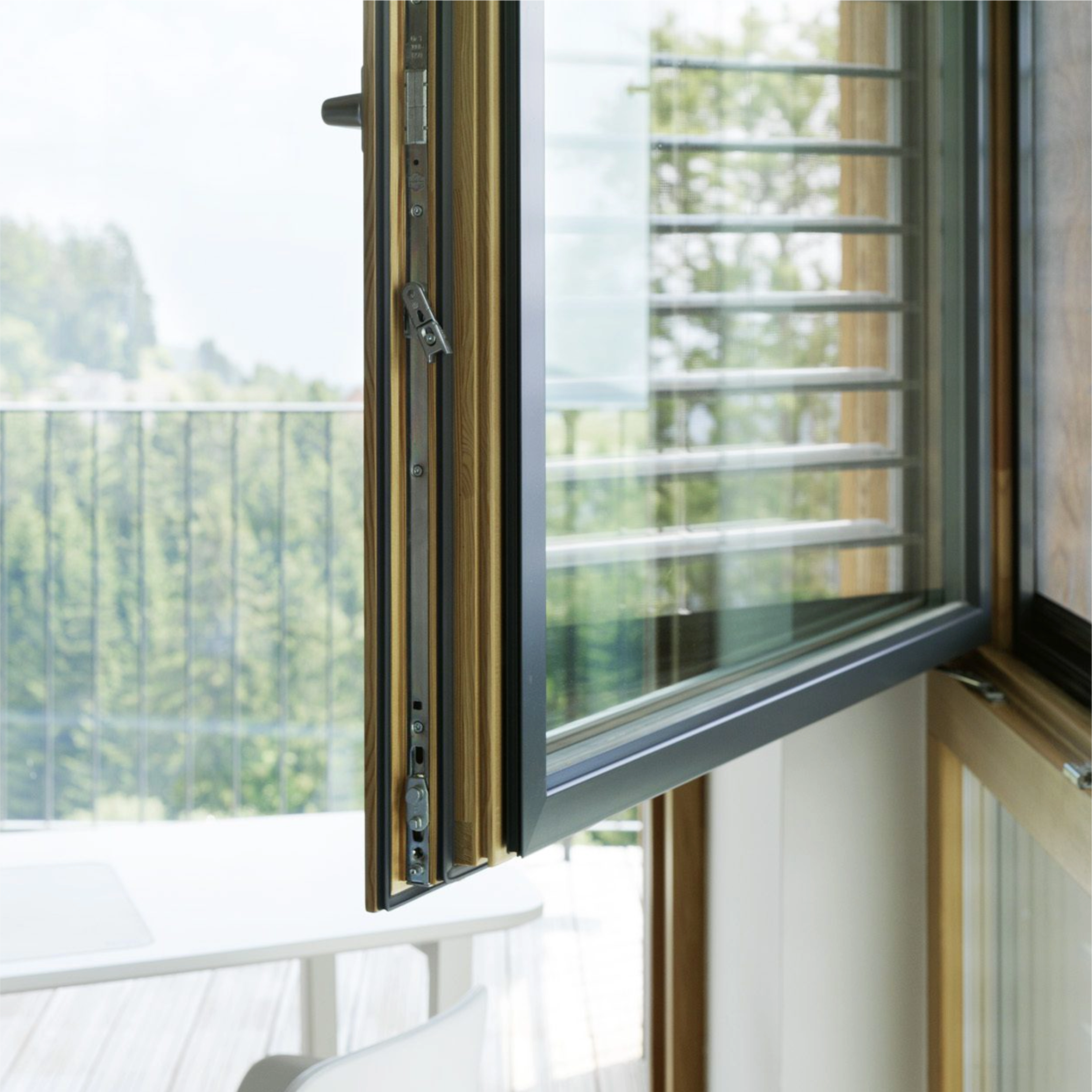 Уникальность этих окон заключается в продуманном сочетании двух материалов. Внутренняя часть выполнена из натурального дерева, создающего уютную атмосферу и обеспечивающего отличную теплоизоляцию. Внешняя алюминиевая облицовка защищает конструкцию от атмосферных воздействий и механических повреждений.