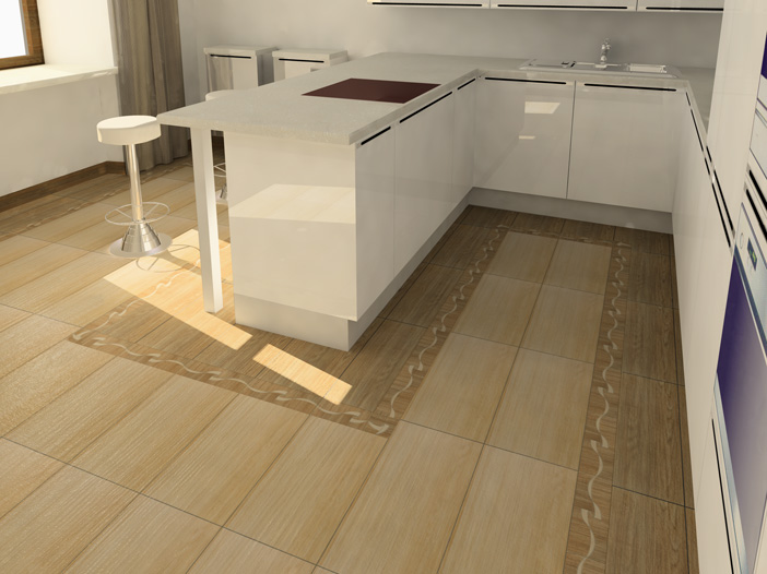 Фаворитом этого года стал керамогранит «под дерево», при котором полы приобретают оттенки натурального дерева. Если с кухонным керамогранитом будут гармонировать ламинат и плитка, расположенные в коридоре, то получится отличное стилевое решение для любой квартирной планировки. По внешнему виду и фактуре керамогранит напоминает плитку напольную, но матовую поверхность керамогранита не подвергают обработке по завершению процедуры обжига.