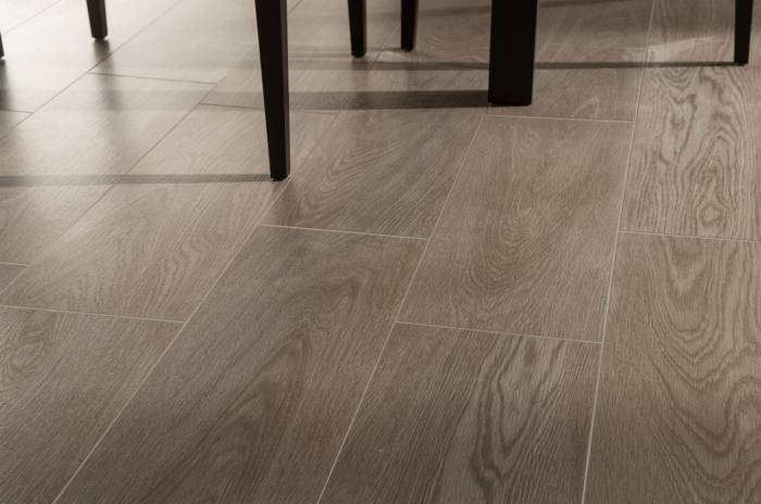 В отличие от дерева плитка и не сгниет, не подвержена насекомым, да и мебель ее не поцарапает, она крепче и дольше служит. К тому же плитка под дерево лучше перенесет перепады температуры, чем линолеум, прихотливый паркет или же ламинат. Учтите, что также проще за ней ухаживать и стоит часто дешевле, нежели многие упомянутые материалы.