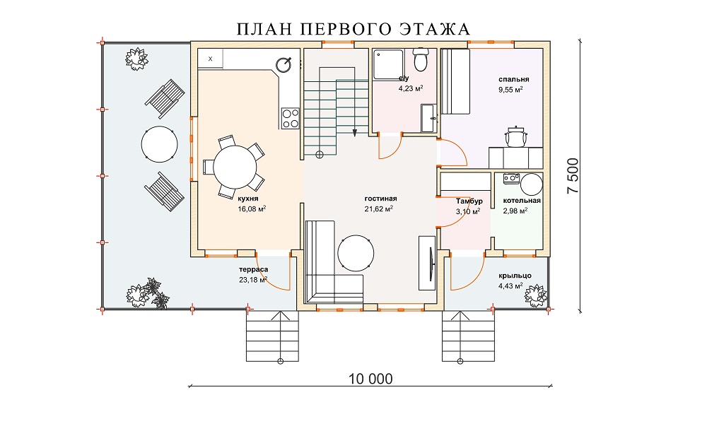 - Одноэтажные дома — компактность и удобство без лестниц, подходят для участков с ограниченной высотой застройки.