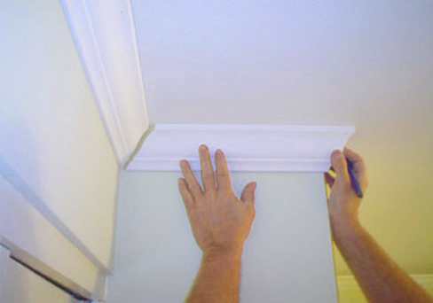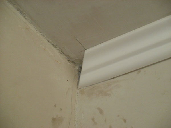 3. Прежде, чем клеить уголки, всегда проверяйте их на стене: сошлись или нет две части угла. Сначала приклейте обе части угла и крепко прижмите их на стыке, теперь проверьте, что два куска плотно схватились.