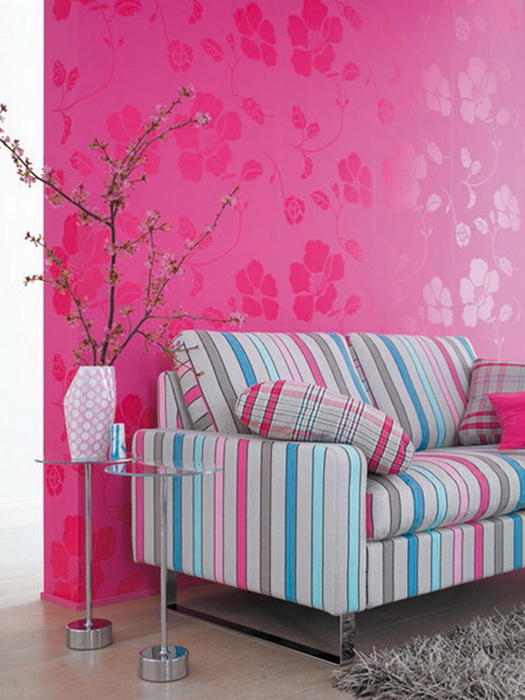 Первое место, где можно применить такие обои – это гостиная. Психологи утверждают, что если сделать такую отделку, то цвет будет способствовать расслаблению, умиротворения, а также успокоит вас.